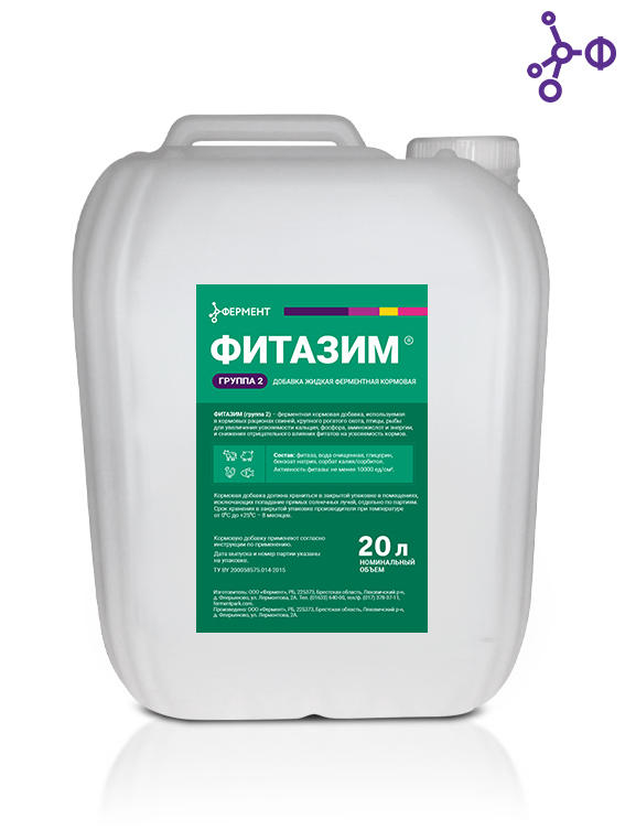- «Фитазим» (группа 2), активность не менее 10000 ед/мл — 50 г/т корма.